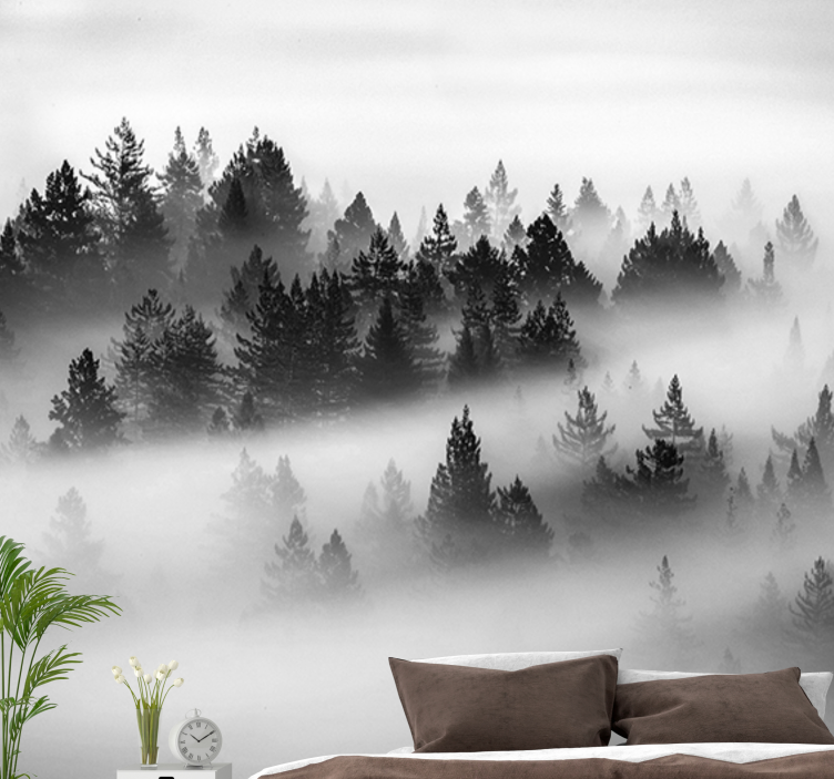 Scopri la bellezza unica del Fotomurale foresta boschi sempreverdi nebbiosi, un design incantevole che trasmette l'atmosfera di una foresta avvolta nella nebbia. Con i suoi alberi silenziosi e la scala di grigi che ricorda i paesaggi naturali più suggestivi, questo fotomurale è perfetto per chi desidera portare un tocco di natura all'interno della propria casa!