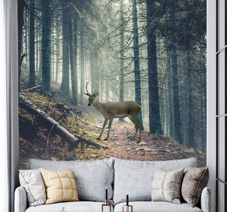 Immergetevi nella bellezza della natura con il nostro Fotomurale foresta cervo nel bosco, un design incantevole che rappresenta un cervo maestoso in un sentiero immerso tra alberi e una lussureggiante foresta. Questo fotomurale cattura l'essenza degli animali selvatici e della natura, creando un'atmosfera magica e rilassante per ogni ambiente!