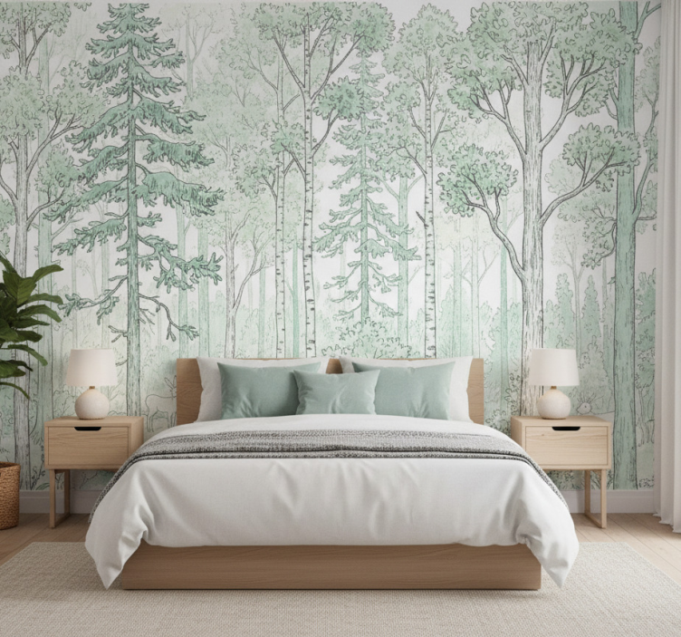 Fotomurale foresta schizzo boschivo menta