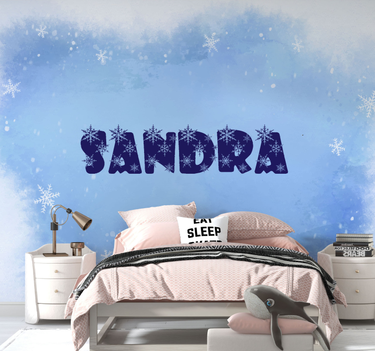 Scopri il nostro Fotomurale personalizzato creazione di nomi personalizzati, un elemento decorativo unico che trasforma ogni ambiente con il suo design accattivante. Realizzato con un affascinante sfondo blu, questo fotomurale presenta un tema congelato con fiocchi di neve e un costume che rende omaggio all'inverno, con un nome personalizzato che rende ogni installazione davvero unica!