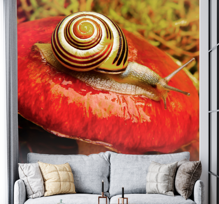 Scopri il nostro fotomurale che rappresenta un'affascinante lumaca su fungo immersa in un vibrante contesto di natura, dove ogni dettaglio è catturato attraverso una fotografia di alta qualità. Questo design unico porta nella tua casa un tocco di freschezza e meraviglia, trasformando qualsiasi ambiente in un angolo di serenità e bellezza!