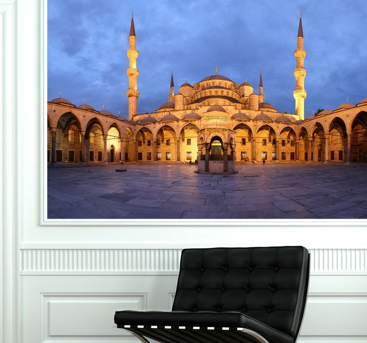 Scoprite il nostro Adesivo città architettura moschea straordinaria, un'opera d'arte che cattura l'essenza della moschea con una fotografia mozzafiato di Istanbul, in Tacchino, celebrando la bellezza dell'architettura storica e ornata di un punto di riferimento religioso. Questo design unico porta un tocco di eleganza e cultura nei vostri spazi, trasformando ogni ambiente in una galleria d’arte!