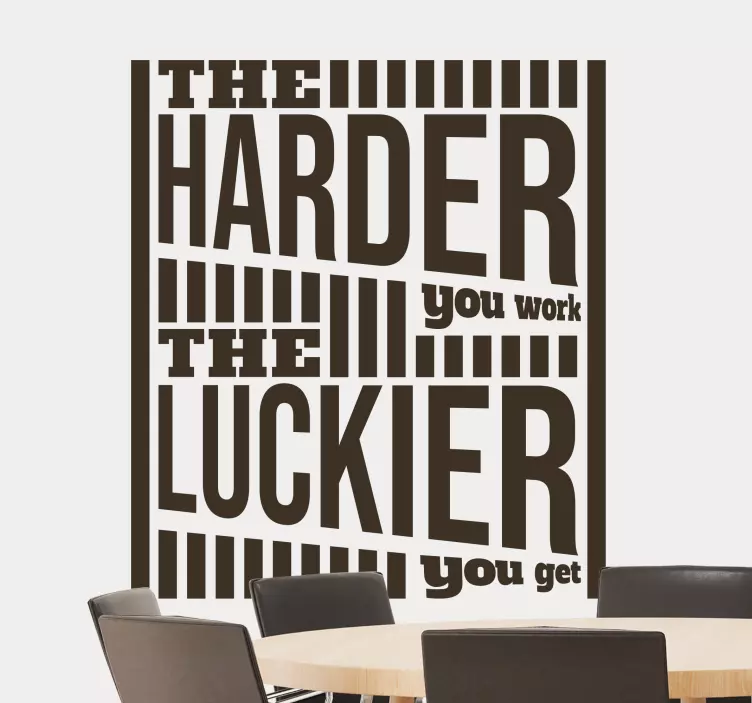 Riferimento: A48010Una citazione potente che sottolinea il rapporto tra lavoro duro e fortuna. Questa frase d'impatto serve come promemoria quotidiano per impegnarsi nel successo attraverso dedizione e sforzo. Perfetta per ambienti d'ufficio o domestici per aumentare la motivazione e ispirare all'azione.