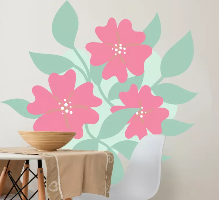 Riferimento: A48129Una composizione vibrante con delicati fiori rosa circondati da foglie verdi lussureggianti. Questo design fresco aggiunge un tocco di natura a qualsiasi spazio, promuovendo un'atmosfera allegra e accogliente.