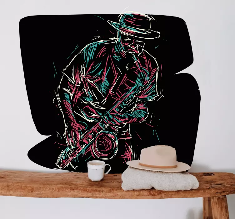 Riferimento: A49425Un'illustrazione dinamica che ritrae un sassofonista immerso nella sua esibizione. I tratti audaci rivelano la passione del musicista, mentre il contrasto dei colori esalta l'atmosfera vivace. Quest'opera cattura l'essenza della musica jazz, evocando emozioni associate al ritmo e all'improvvisazione.