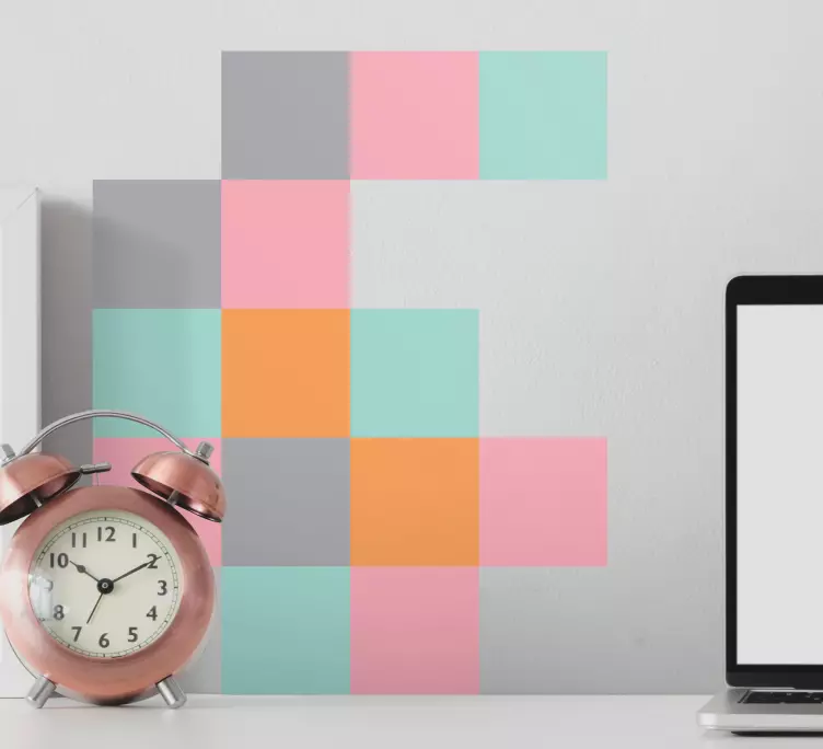 Scopri il nostro adesivo decorativo composizione geometrica colorata, un'opera d'arte che unisce design geometrico, astratto e moderno! Con forme quadrate e una sinfonia di colori, questo adesivo creativo trasformerà ogni ambiente in un'esplosione di stile e personalità.