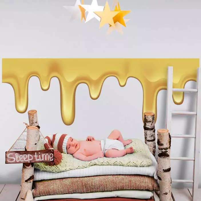 Scopri il nostro adesivo decorativo design colato dorato, un elemento d'arredo unico che incanta per il suo design gocciolante che ricorda il miele e l'oro. La sua struttura liscia e decorativa lo rende perfetto per dare un tocco di eleganza e originalità a qualsiasi ambiente!