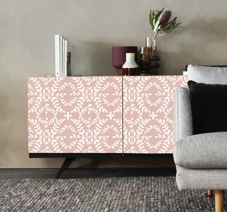 Scopri il nostro adesivo decorativo motivo foglia elaborato, un elemento che trasforma gli spazi con il suo design elegante e moderno. Le sue tonalità rosa e i dettagli ornamentali delle foglie creano un'atmosfera floreale e astratta, perfetta per chi desidera aggiungere un tocco di stile all'arredamento grazie ai suoi toni morbidi.