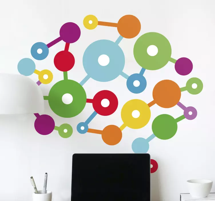 Scopri il nostro adesivo geometrico anelli circolari colorati, un design moderno e creativo che unisce elementi astratti a forme geometriche ispirate al cervello e ai neuroni. Questo prodotto vivace e colorato è perfetto per dare un tocco di originalità e personalità a qualsiasi ambiente!