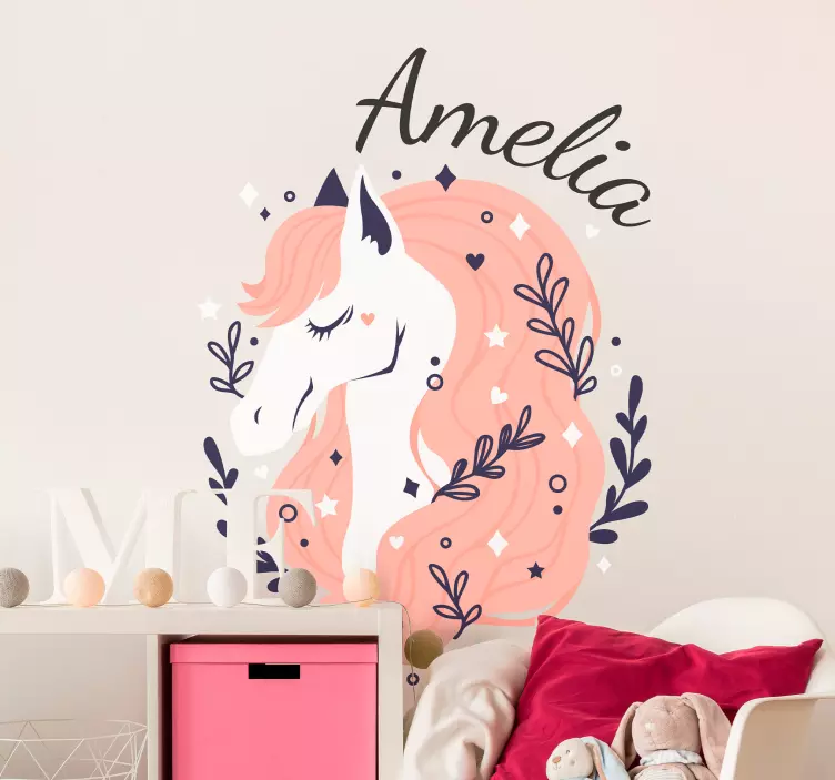 Riferimento: A46837Caratterizzato da un incantevole unicorno con criniera fluente e delicati accenti floreali, questo design aggiunge un tocco fantasioso allo spazio di un bambino. Personalizzabile per un tocco personale in più, cattura un senso di magia e calore, rendendolo ideale per nursery o sale giochi.