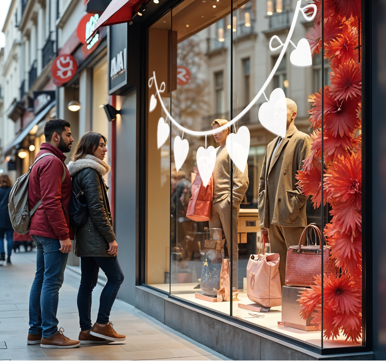 Riferimento: A40830Scopri il nostro Adesivo San Valentino cuori semicircolari, un prodotto unico e affascinante, perfetto per decorare il tuo fronte negozio o la tua vetrina in occasione di San Valentino! Il design presenta cuori semicircolari che fluttuano delicatamente, creando un'atmosfera romantica e accogliente. Con questo adesivo, il tuo spazio si trasformerà in un vero e proprio inno all'amore!