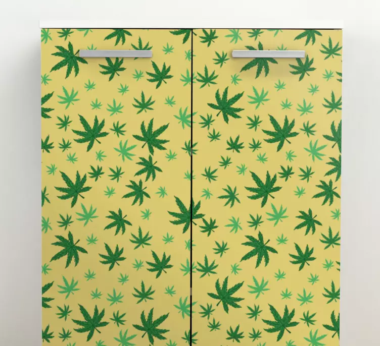 Scopri la bellezza naturale con il nostro adesivo per frigo superficie a foglie decorative, un design unico che richiama l'atmosfera tropicale e botanica con foglie di cannabis e marijuana. Questo modello incantevole arricchisce il tuo arredamento, rendendo ogni cassetto e superficie un angolo di natura verde e viva!