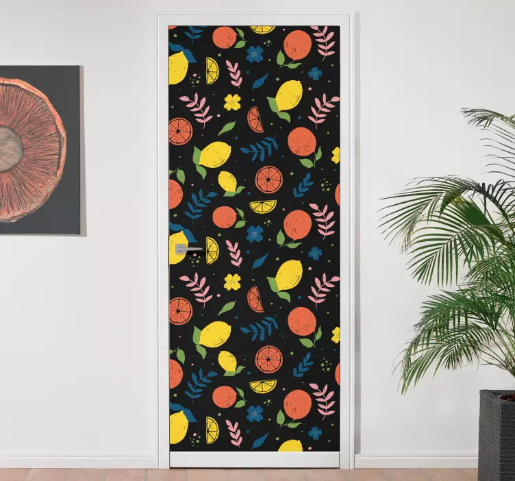 Adesivo per porta motivi agrumati colorati