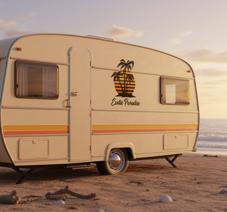 Riferimento: A54713Scopri il nostro adesivo per roulotte tramonto paradisiaco esotico, un prodotto dal design grafico unico che cattura l'essenza di un tramonto da sogno. Caratterizzato da una finitura satinata che evita riflessi fastidiosi, questo adesivo porta un'intensa vivacità di colori, permettendo di godere della bellezza del vinile senza abbagliamento. La facilità di pulizia con un panno umido e sapone neutro lo rende pratico e funzionale, mentre la sua resistenza nel tempo assicura che il tuo adesivo rimanga luminoso e intatto per anni!