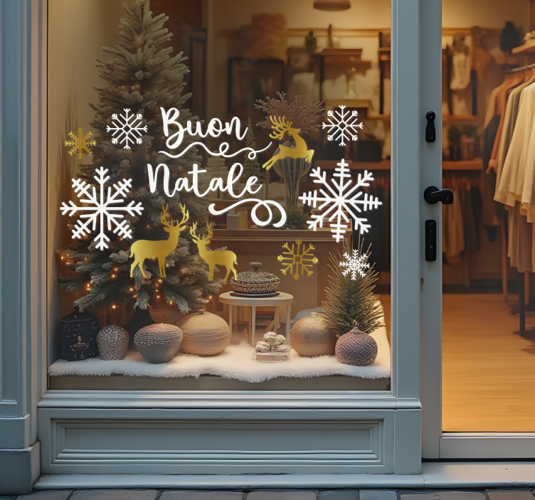 Utilizzare il Adesivo per vetrine scenario di cervi dorati è un modo straordinario per dare vita ai tuoi spazi! Non solo arricchisce l'ambiente con un tocco di eleganza natalizia, ma crea anche un'atmosfera calda e accogliente. I nostri adesivi sono realizzati con materiali di alta qualità, garantendo un'intensità di colore che cattura l'attenzione. L'effetto satinato consente una visione chiara e priva di riflessi, rendendoli ideali per ogni occasione festiva. Non puoi perderti l'opportunità di abbellire i tuoi spazi con questo design unico!