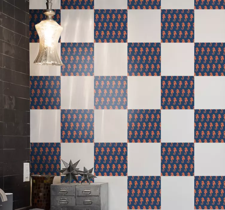 Scoprite il nostro Adesivo pesce design a motivo cavalluccio marino, caratterizzato da un design vivace e colorato che celebra la bellezza della vita marina. Con un tema dell'oceano, questo adesivo presenta cavallucci marini che danzano tra tegole e piastrelle, creando un'atmosfera sottomarina che incanta e sorprende!
