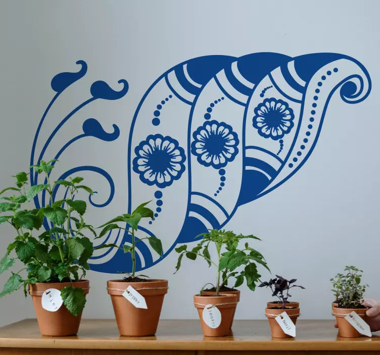 Scoprite il nostro Adesivo pianta ispirazione foglia botanica, un meraviglioso elemento decorativo che trasforma gli spazi con il suo design ornamentale ispirato alla natura. La sua grafica è un tripudio di conchiglie, fiori e motivi marini, che si intrecciano in vortici di flora e bellezza. Questo adesivo è perfetto per chi desidera portare un tocco di eleganza naturale in ogni ambiente!