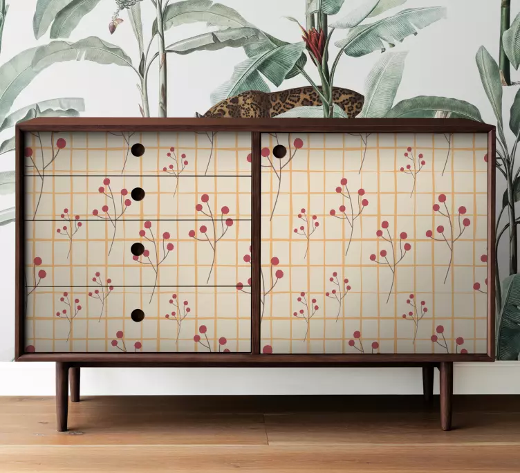 La carta adesiva per mobile cassetto a motivi floreali è un vero e proprio capolavoro di design! Con un motivo a scacchi e griglia arricchito da frutti di bosco, questo modello colorato porta un tocco di freschezza e vitalità in ogni ambiente. Perfetta per arredare con stile un cassetto o qualsiasi superficie piana, si distingue per il suo aspetto floreale che trasforma ogni spazio in un luogo accogliente e originale.