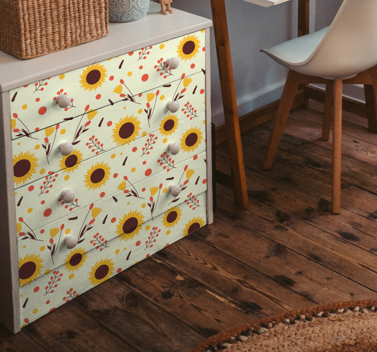 Porta un tocco di natura e colore nella tua casa con la carta adesiva per mobile design a motivi di girasole! Questo design floreale, caratterizzato da girasoli vivaci e un modello accattivante, è perfetto per dare nuova vita ai tuoi arredi. Grazie ai suoi toni vivaci, questa carta adesiva trasforma ogni ambiente, rendendolo accogliente e gioioso!