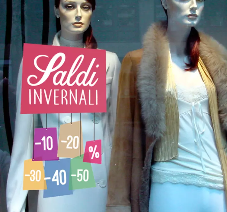 È l'ora dei saldi!!!!! Fai sapere ai tuoi clienti che è arrivato il momento dei grandi sconti invernali con questa vetrofania commerciale, colorata e di facile applicazione.