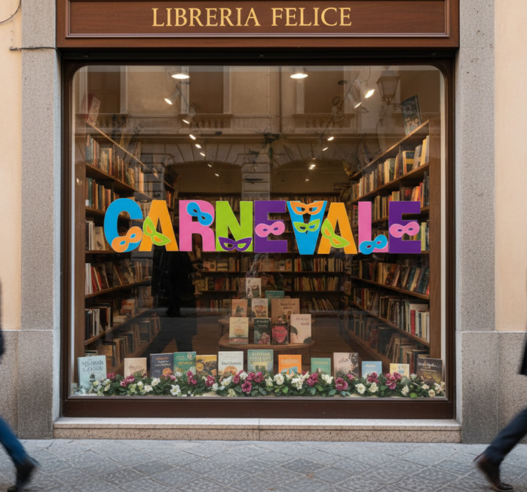 Vetrofanie scrittura colorata di carnevale