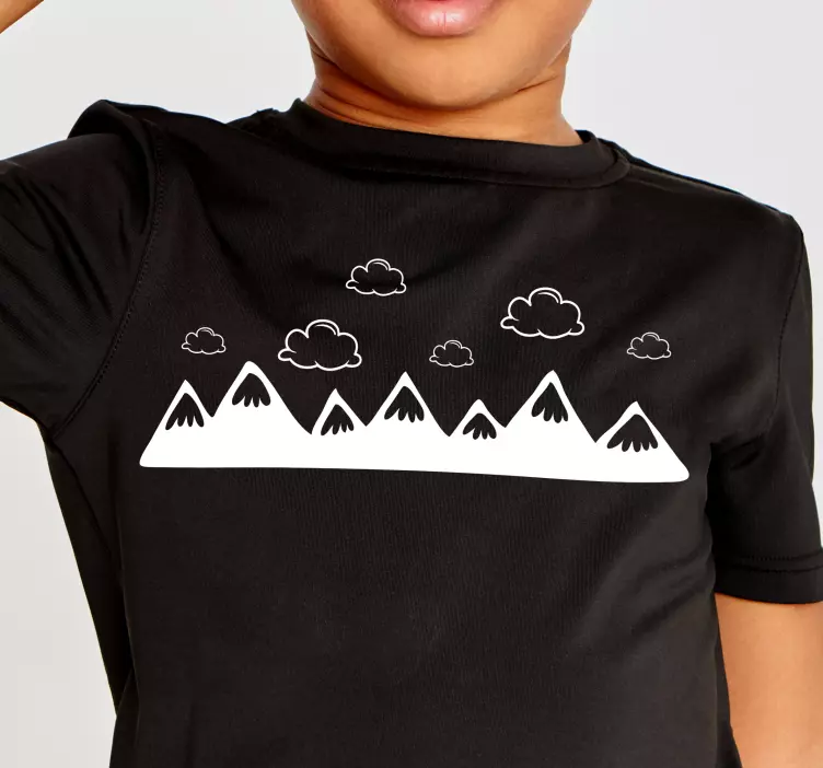 Scopri la nostra maglietta avventura nelle nuvole di montagna, un capolavoro di design che cattura l'immaginazione! Con un'illustrazione che unisce nuvole, silhouette e montagne, questa maglietta è perfetta per i bambini che amano l'avventura all'aperto e vogliono esplorare la natura in modo originale. Le sagome di nuvole danzano sulle tonalità di nero e bianco, creando un look accattivante e giocoso.