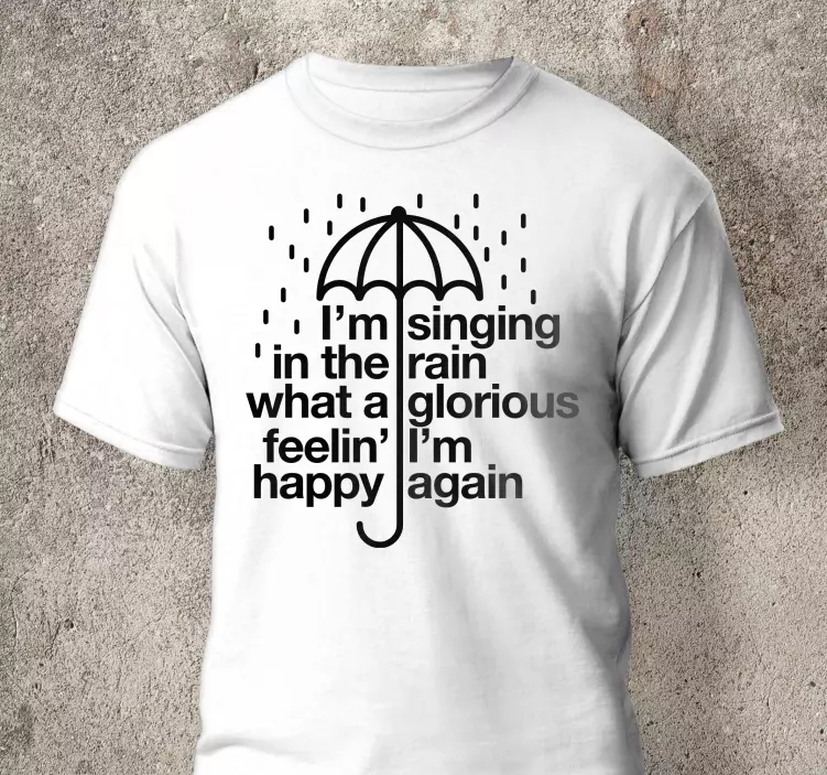 Scopri la nostra Maglietta citazione felice ombrello piovoso, un capo d'abbigliamento che unisce stile e buon umore! Il design di questa maglietta presenta un ombrello colorato che si apre sotto una pioggia di testo e scritte allegre, creando una sensazione di felice e glorioso ottimismo. Indossarla è come cantare sotto la pioggia, trasformando anche i giorni più grigi in occasioni da festeggiare!