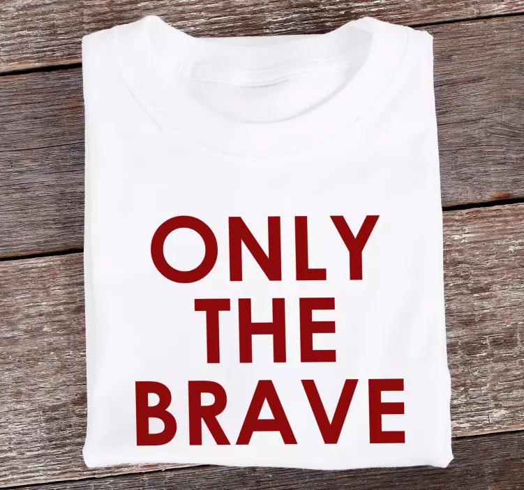 Riferimento: T4822Questo design presenta una dichiarazione in grassetto che enfatizza il coraggio. La tipografia forte cattura l'attenzione e trasmette un messaggio di audacia. Ideale per esprimere forza, questo pezzo risuona con le persone che apprezzano frasi impattanti nel loro guardaroba.