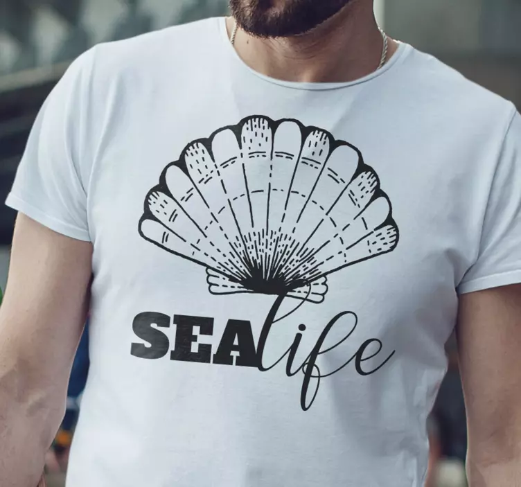 Riferimento: T5387Questo design presenta una bellissima illustrazione di una conchiglia sopra la parola 'SEAlife' in stili contrastanti. La palette di colori in bianco e nero esalta l'appeal estetico, rendendolo perfetto per un abbigliamento casual. Ideale per gli appassionati del mare e gli amanti della natura.