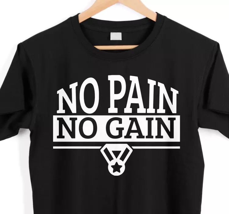 Scopri la nostra maglietta frase motivazionale per il fitness, un capo unico e ispiratore! Con un design tipografico accattivante, questa maglietta è caratterizzata da scritte che parlano di dolore e guadagno, infondendo una dose di motivazione ogni volta che la indossi. Le citazioni che adornano il tessuto nero sono perfette per chi cerca ispirazione nella propria routine di allenamento!