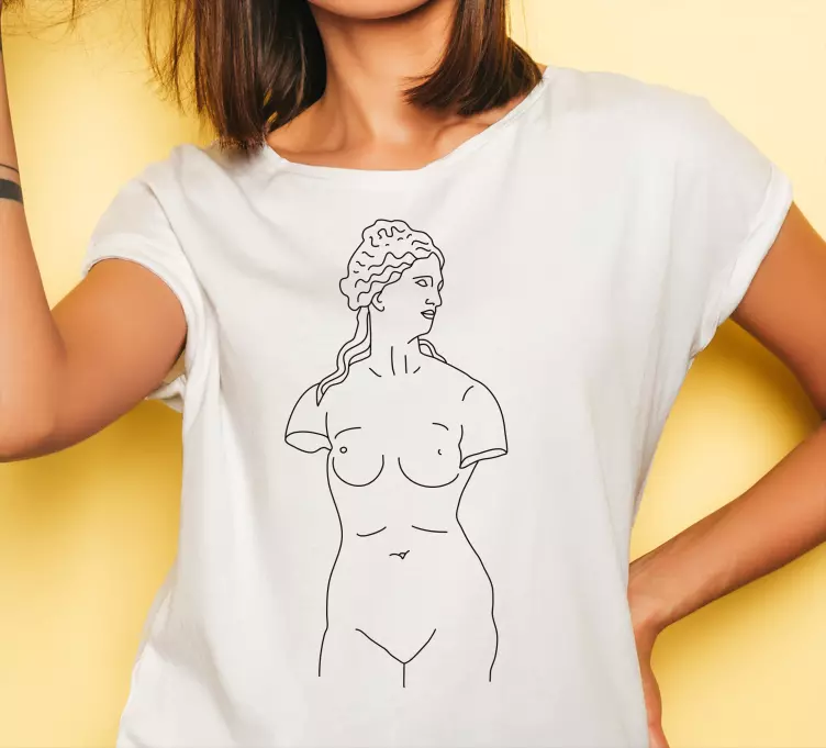 Scopri la nostra maglietta silhouette femminile elegante, un vero e proprio capolavoro di design che fonde l'antico con il moderno. Ispirata all'arte greca, questa t-shirt presenta un ritratto di donna in una linea artistica e culturale che cattura l'essenza della bellezza femminile. Con un tocco astratto e un approccio minimalista, la maglietta si inserisce perfettamente nella moda contemporanea, rendendola un elemento imprescindibile nel guardaroba di ogni donna!