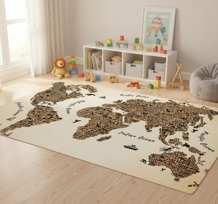 Riferimento: R23110Scoprite il nostro Tappeto vinile mappamondo con profilo testi, un'opera d'arte per il vostro spazio! Caratterizzato da un design accattivante che unisce un elegante mappamondo, colori vivaci, e un profilo di testi che arricchisce la vostra decorazione, questo tappeto è perfetto per chi desidera un elemento unico e stimolante nella propria casa!