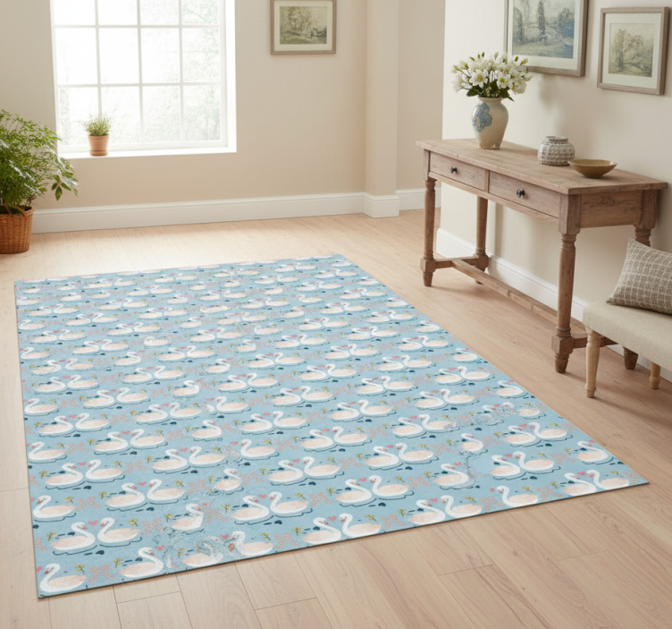 Tappeto vinile natura motivi di cigni innamorati su blu