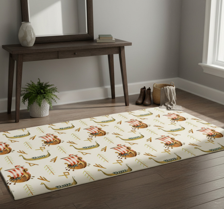 Riferimento: R21981Scopri il nostro Tappeto vinile natura motivo nave vichinga, un capolavoro di design che unisce eleganza e originalità! Con il suo motivo ispirato alle navi vichinghe, questo tappeto presenta un design affascinante, colori vivaci e dettagli accurati che richiamano la bellezza della natura. Perfetto per chi ama portare un tocco di avventura e storia nella propria casa, è una scelta ideale per ogni ambiente!