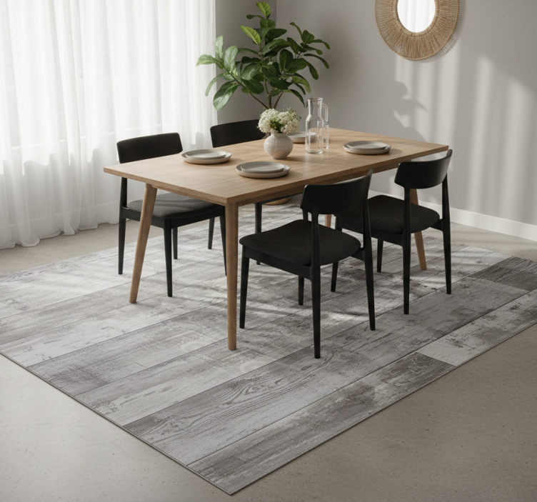 Tappeto vinile sala da pranzo tavole di legno grigie