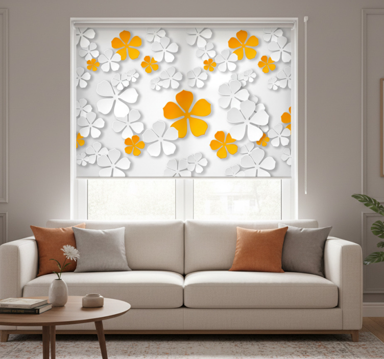 Tenda a rullo bianca contrasto fiorito