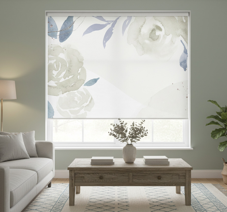 Tenda a rullo bianca illustrazione decorativa floreale