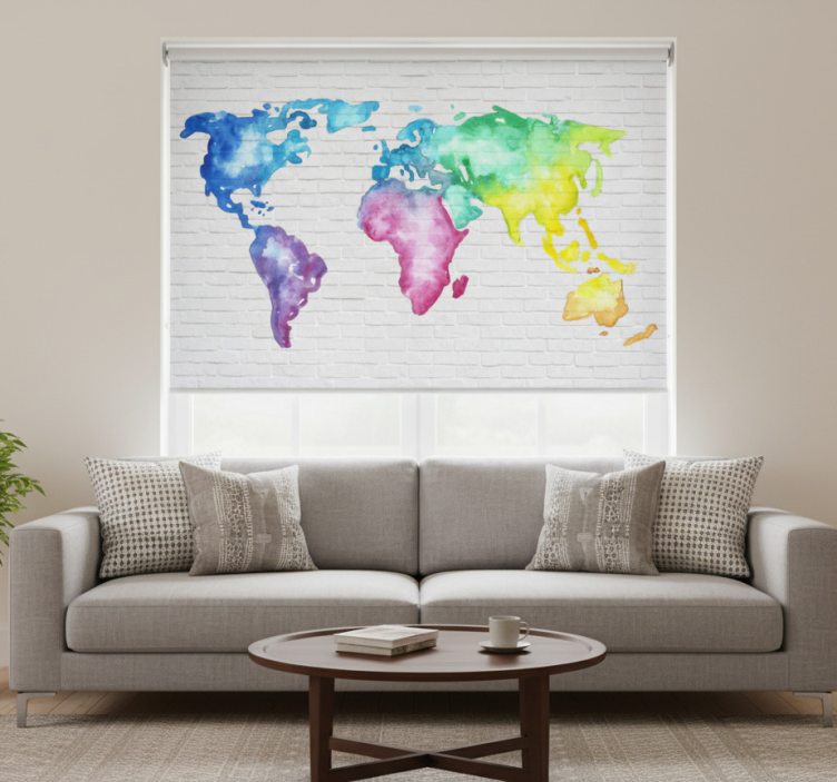 Tenda a rullo bianca mappa del mondo colorata