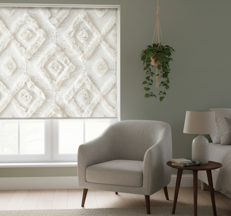 Tenda a rullo bianca motivo a diamante
