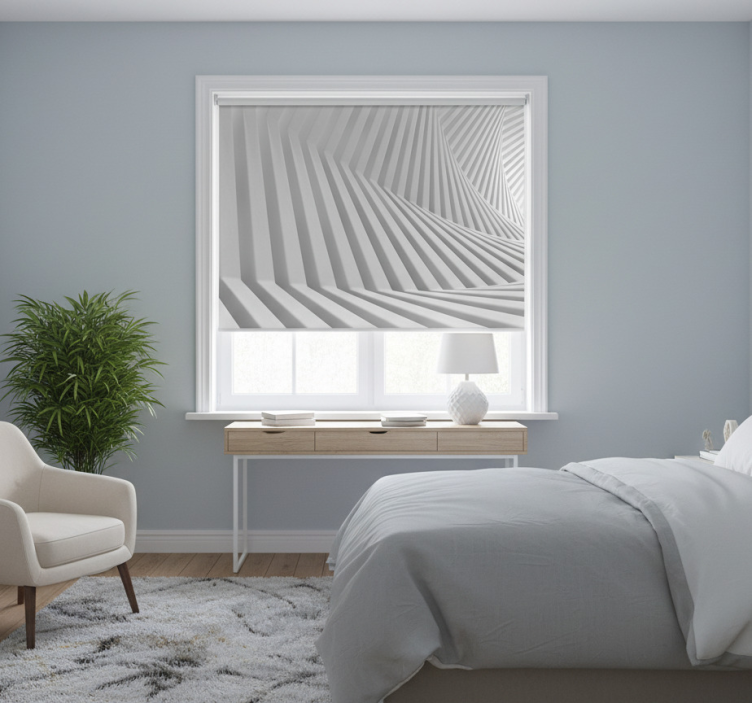 Riferimento: E8702La tenda a rullo bianca onde geometriche astratte è un'opera d'arte per le vostre finestre! Con il suo design elegante e moderno, caratterizzato da onde geometriche che si intrecciano in un gioco di linee armoniose, questa tenda non solo arricchisce l'estetica della vostra casa, ma offre anche funzionalità. Facile da montare in 2 clic e altrettanto semplice da smontare, è ideale per chi cerca praticità e stile. Inoltre, è facile da pulire e protegge la stanza dalla luce solare diretta, garantendo privacy e comfort.