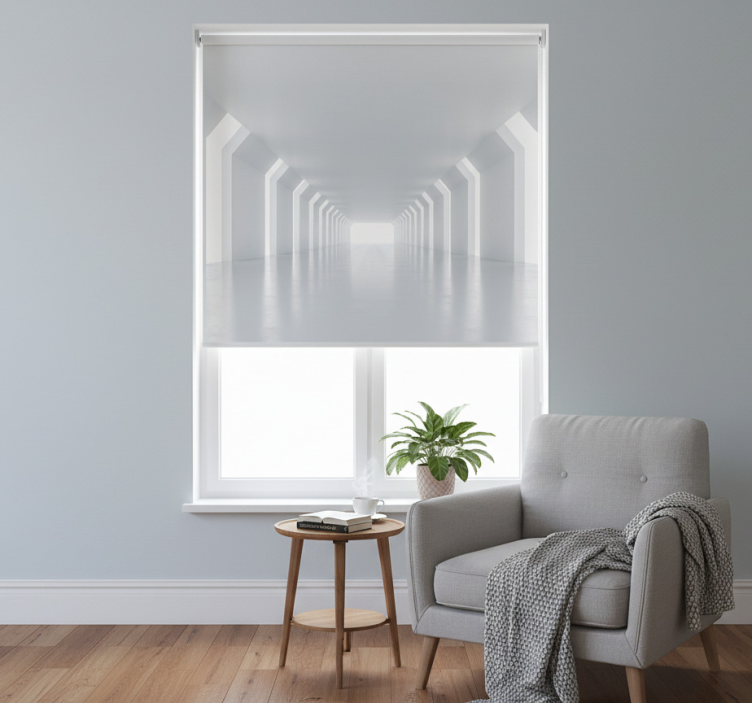 Tenda a rullo bianca prospettiva corridoio futuristico