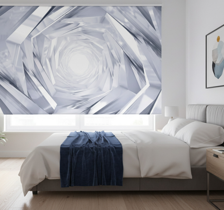 Tenda a rullo bianca tunnel geometrico astratto