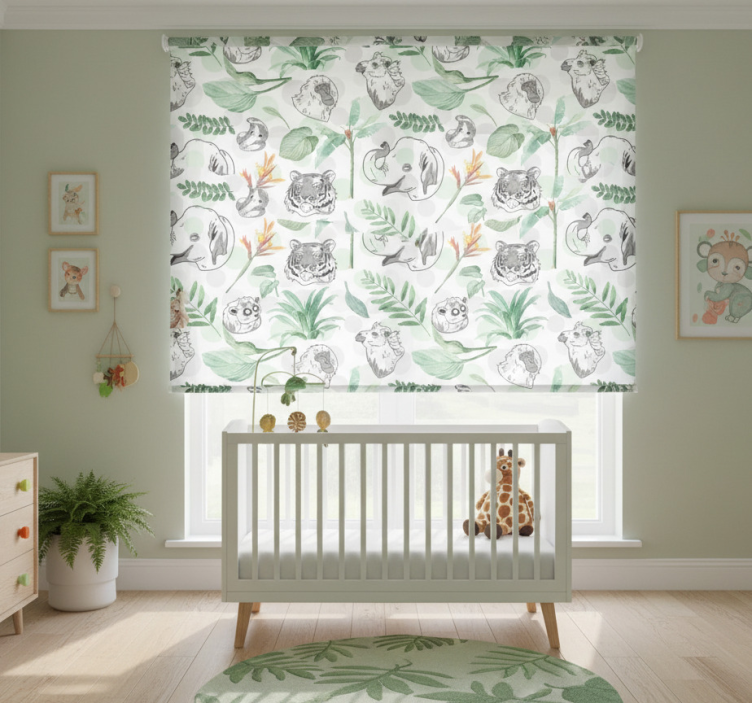 Tenda a rullo cameretta animali e piante acquerello