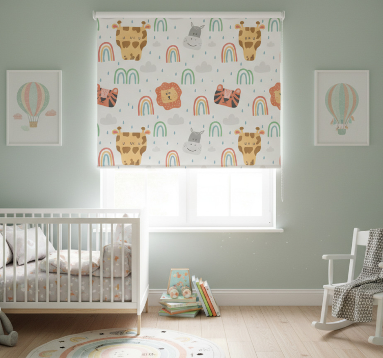 Tenda a rullo cameretta animali e arcobaleni pastello