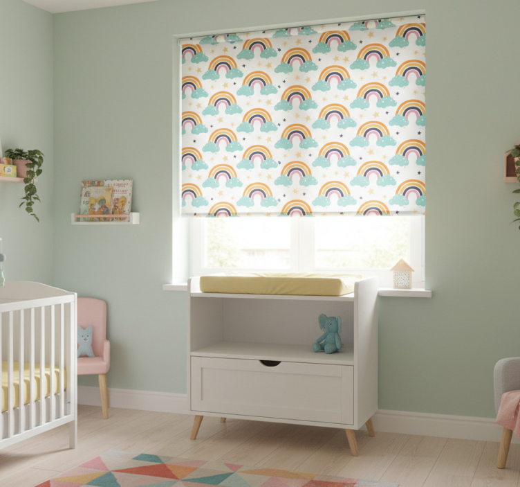 Tenda a rullo cameretta arcobaleni e nuvole