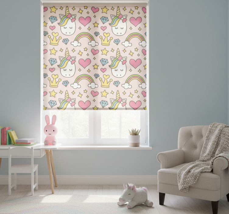 Tenda a rullo cameretta arcobaleni e unicorni con diamanti