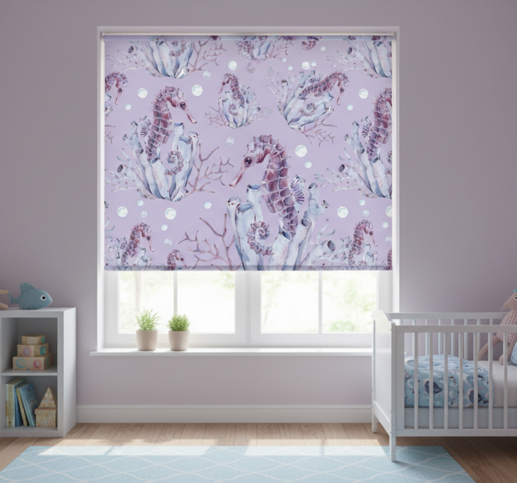 Tenda a rullo cameretta cavalluccio marino acquerello