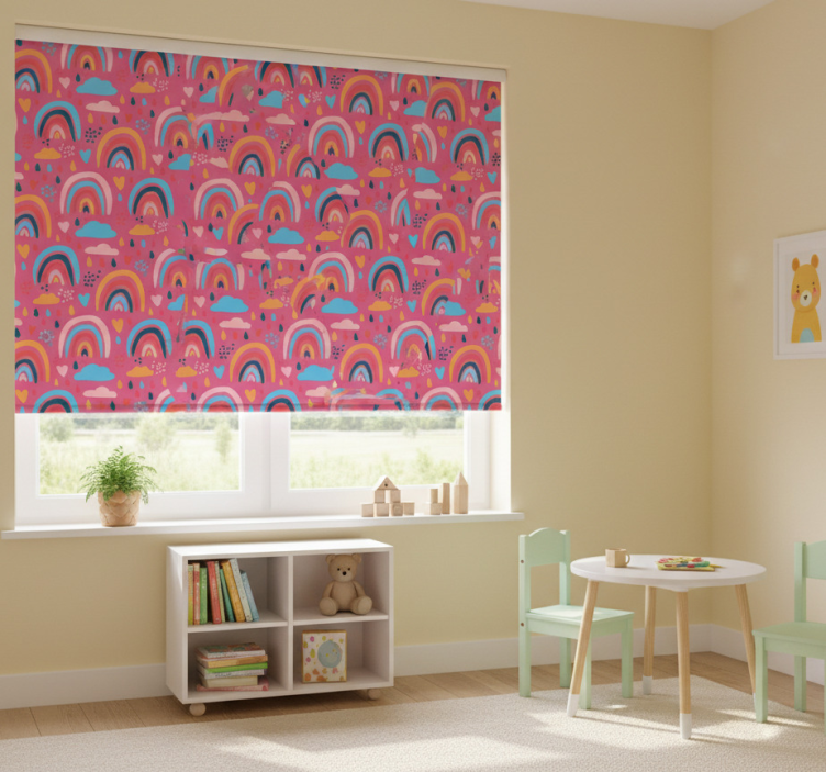 Tenda a rullo cameretta con motivi arcobaleno giocosi