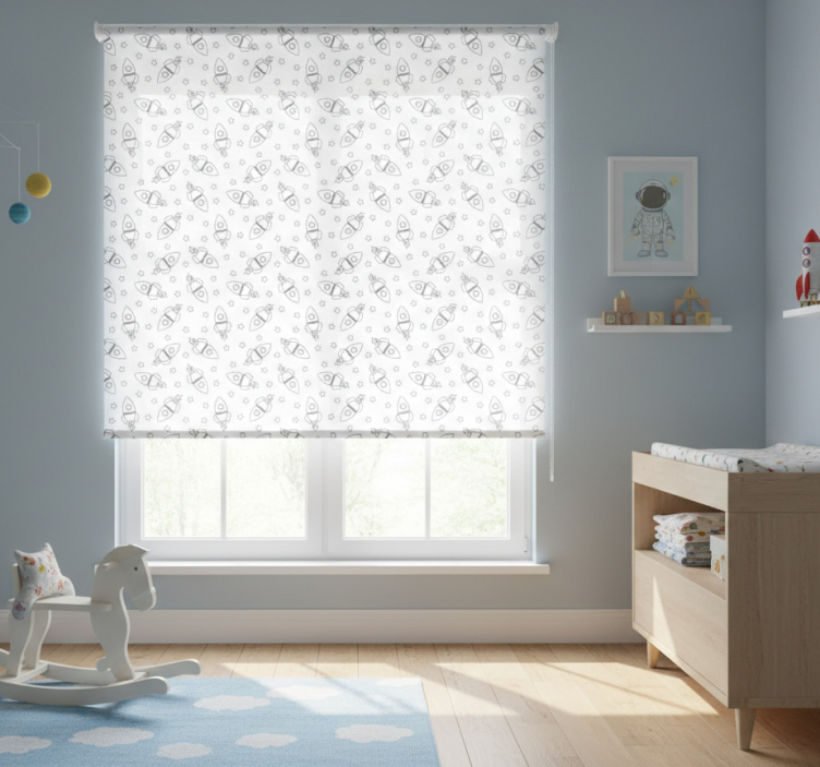 Tenda a rullo cameretta con silhouette di razzi e stelle