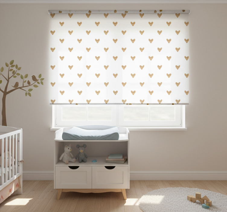 Tenda a rullo cameretta cuore dorato su sfondo bianco